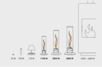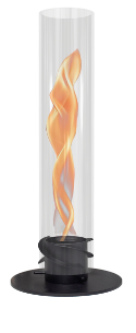 Уникальная конструкция камина позволяет приточному воздуху поступать к пламени вращательным образом. Тепловые силы и эффект дымохода стекла дополнительно создают огненный вихрь, который надежно закрыт в стеклянном цилиндре. В результате пламя растет более чем на 500 процентов — без какой-либо дополнительной энергии!